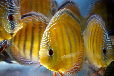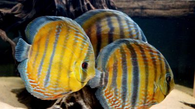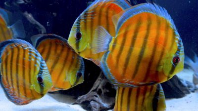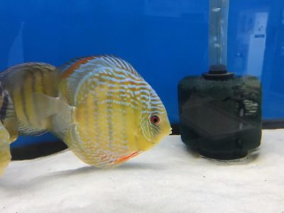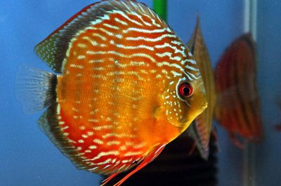 What other fish has the palate of a peacock feather, the golden stripes of a tiger, and the electric blue of the 80s hit by Icehouse? This eye-catching discus is...